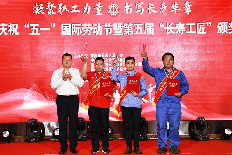 4月29日,長壽區慶祝“五一”國際勞動節暨第五屆“長壽工匠”頒獎典禮在區職工服務中心舉行。望變電氣職工陳洪獲“長壽工匠”稱號,職工馮明名獲“2023年度非公組織優秀工會工作者”稱號。“長壽工匠”陳洪領獎現場2...