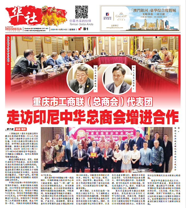 2024年10月23日,重慶望變電氣(集團)股份有限公司受重慶市工商聯(總商會)代表團邀請出訪印尼中華總商會。中國已連續11年保持印尼最大貿易夥伴地位,根據中國海關的數據,2023年印尼和中國的雙邊貿易額達到1394億...